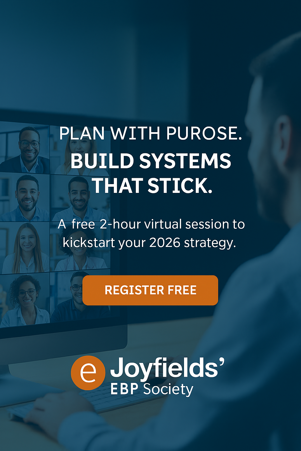 - Masterclass Systems Preview: Get a first look at our newly elevated Joyfields' EBP Society training systems for frontline staff, supervisors, supervisors, trainers and executives.